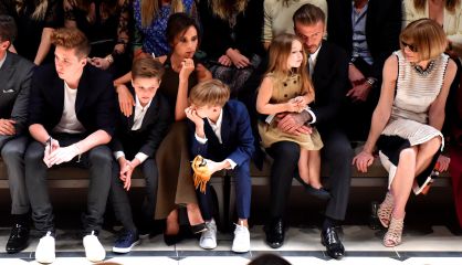 En la imagen, la familia Beckham al completo en el 'front row' de Burberry. David y Victoria acudieron al desfile de la firma con sus cuatro hijos -uno de ellos ha sido modelo de la marca. Anna Wintour, y otros muchos rostros conocidos, se dieron cita también en Los Ángeles.