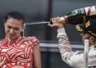 El piloto celebró la victoria en el Gran Premio de Shanghái rociando a una de las azafatas con champán. Las críticas han arreciado en China