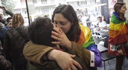 The pair were asked to leave the Store Café in Barcelona by a member of staff after kissing each other