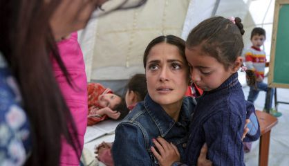 En la imagen, la actriz mexicana, Salma Hayek, ha aprovechado su viaje al Líbano, donde promociona su película 'El profeta', para visitar a los refugiados sirios asentados en ese país, que es el de sus antepasados.