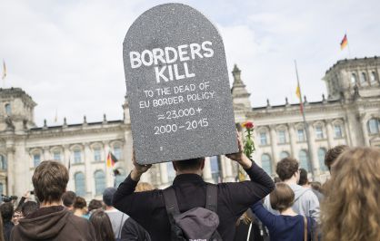 Miles de berlineses representaron el domingo frente al Reichstag una obra crítica contra la política de inmigración europea