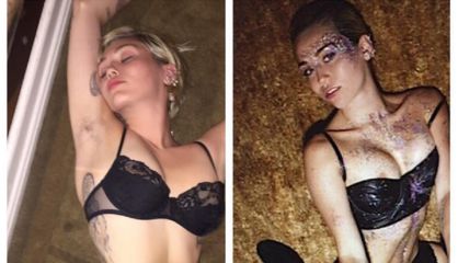 La polémica cantante de 22 años recrea una de las imágenes de la sesión fotográfica que realizó para la edición de septiembre de la revista 'W Magazine'