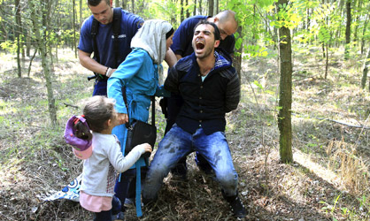 20 IMÁGENES PARA ACERCARSE AL DRAMA DE LOS REFUGIADOS. En la imagen, la policía húngara detiene a un inmigrante sirio. / reuters