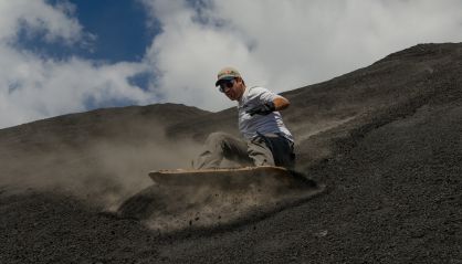 Turistas de todo el mundo viajan a Nicaragua para deslizarse por las empinadas laderas del Cerro Negro