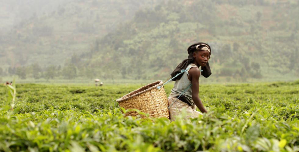 En Ruanda, los trabajadores del té de Ruanda seleccionan las hojas más tiernas que se consumirán en Europa durante 12 horas al día por 30 euros al mes