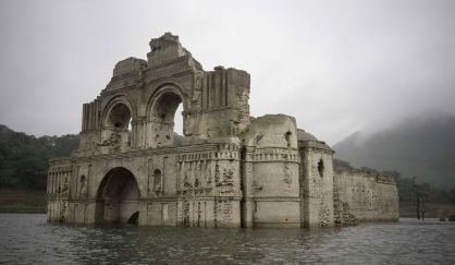 Low rainfall sees immersed 16th-century temple reemerge along waterway in southeastern Chiapas state