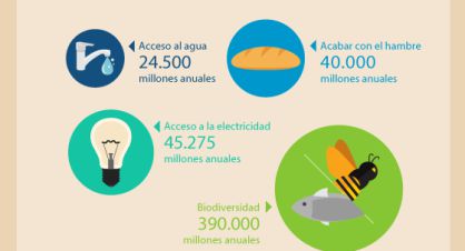Cada ODS tiene un coste muy distinto. Desde los 24.500 millones para garantizar el acceso al agua hasta los nueve billones para infraestructuras sostenibles