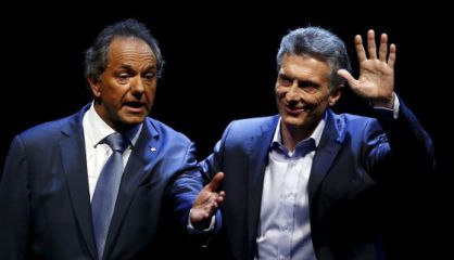 El candidato peronista critica por un eventual ajuste a Macri, favorito en las encuestas. Este ataca al kirchnerismo
