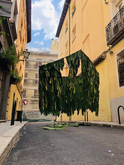 Este fin de semana, el ciudadrealeño pondrá en práctica su visión personal del arte floral con una instalación en aquel festival que despertó su pasión por el oficio. Ha ganado el concurso Patio Talento, que es la convocatoria con que el equipo de Flora abre su programación, normalmente reservada a artistas consagrados, a creadores emergentes o más desconocidos. Pero, en estos años, ha dejado de ser un principiante. Ahora es él quien imparte clases en la misma escuela donde estudió. Como florista, asume proyectos por encargo —instalaciones para fiestas, eventos, cenas o escaparates—, pero sin descuidar la faceta más experimental. Ikefrana, como la mayoría de iniciativas florales más interesantes de los últimos tiempos, tiene algo de acción de guerrilla. En una ocasión, creó un cubo con hojas de aspidistras y lo colocó en medio de una calle, para observar la reacción del público. También colaboró con una asociación ibicenca en defensa de la posidonia, con quien instaló un misterioso monstruo vegetal que invitaba a mirar más allá de la superficie del agua.