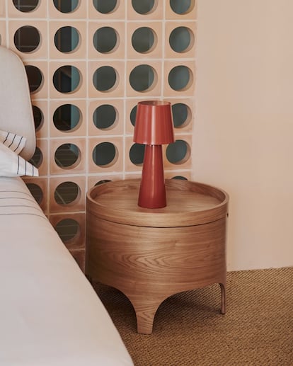 La curva libre de salientes y la madera de fresno crean un perfecto match en esta mesita de noche de tintes nórdicos.