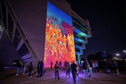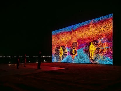 Lozano-Hemmer acaba de inaugurar Jardín inconcluso, una gran exposición en el Museo de Arte Moderno de Ciudad de México que lo ha llevado a trabajar en su país natal durante seis semanas. Desde Canadá, hace años que está integrado en un contexto muy distinto, por lo que ha acusado especialmente el impacto emocional de la violencia desatada en México tras la muerte del narco Nemesio Oseguera, El Mencho, a manos del ejército nacional. “Es complicado entender qué sucede y qué no, porque la velocidad a la que la gente acapara estas imágenes y las distribuye es increíble”, reflexiona. “Hay muchos intereses por llevar la conversación a un sitio o a otro, y el ciudadano frente a eso está indefenso a la hora de esclarecerlo. Yo me estoy cuidando mucho de no leer las cosas sin cierta distancia, porque no puedes simplemente reaccionar, que es lo que las redes quieren. Desde Canadá, con unas temperaturas de menos 25 grados, tiendo a romantizar México, que con todos sus problemas sigue siendo de los mejores lugares del mundo. Al estar allá, veo por un lado a mucha gente muy preparada para el arte contemporáneo, y por otro que también están los malos más malos de la película. Eso es México, un contraste de mundos opuestos que coexisten”.
