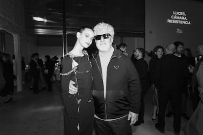Y así fue. Durante la siguiente hora, por el escenario fueron desfilando hombres y mujeres que, como apuntaba Boris, “en los últimos dos años no han dejado de acompañarnos, de inspirarnos y de deslumbrarnos”. Abrió el fuego Karra Elejalde, encargado de entregar el Premio ICONO a Alejandro Amenábar. “No me siento un icono pero para cualquier creador la mayor ilusión es que algo perviva de sus películas, alguna escena, algún gesto, y con esa ilusión recibo muy agradecido este premio”, afirmó el cineasta. Elizabeth Duval, Premio Agitación Cultural, dedicó el premio a su madre y rindió homenaje a sus orígenes. “Yo soy hija de una mujer, mi madre, que era camarera de piso y a la que pilló la reforma laboral. Ahora, cada vez que me toca ir a un hotel como alguien que está al otro lado, siento una extrañeza. Esa extrañeza tiene algo de positivo, que es eso de no olvidar: no olvidar de donde se viene”. Esa misma autenticidad estuvo presente en las palabras de Alizzz, quien reconoció que el Premio ICON de Música significa para él el primer reconocimiento por parte del ámbito de la cultura. Y, hablando de principios, la emoción tiñó las palabras de Pedro Almodóvar cuando entregó el Premio Actriz ICON a Milena Smit, y subrayó la importancia que tiene el primer premio de muchos, “aunque a mí no me dieron ningún premio por Pepi, Luci, Bom”, recordó con una sonrisa. Smit, a su vez, leyó emocionada un discurso en el que subrayaba los lazos afectivos establecidos durante el rodaje de Madres paralelas, y lanzó un alegato por la visibilidad en los medios y en el debate social del problema de la salud mental. “No podemos seguir banalizándolo, démosle la importancia y el lugar que merece”, subrayó. Otro momento álgido de la noche fue la conexión telefónica de Boris Izaguirre y Fernando Guallar con Diego Boneta, Premio Actor ICON, que no pudo recoger el galardón en persona debido a un imprevisto. “Uno hace planes y el covid los destruye. Es parte de esta nueva realidad”, explicó el protagonista de Luis Miguel, la serie (Netflix) desde su hotel madrileño.