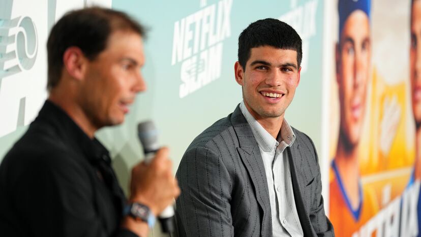 En la rueda de prensa previa al partido, Andre Agassi y el CEO de Netflix, Greg Peters, posan junto a Nadal y Alcaraz. Todos, menos el tenista murciano, tienen en común una cosa: que junto a sus trajes lucen zapatillas de deporte: ese socorrido estilo híbrido que los últimos años ha aniquilado el look formal. Carlos Alcaraz, a pesar de que es un fanático del universo sneaker, se mantiene fiel a los códigos clásicos de la elegancia masculina y deja ver que, tal vez, vestirse para la ocasión vuelve a ser tendencia.