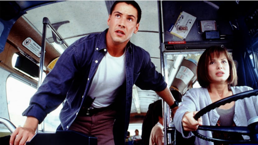 Con la sencilla y eficaz premisa de un autobús que no puede bajar su velocidad, el taquillazo convirtió a Keanu Reeves en uno de los actores más influyentes del género y también propulsó a Sandra Bullock