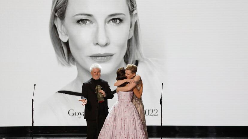 Y (ups) justo después, el gran momento. La salida al escenario de Cate Blanchett para recibir el premio Goya Internacional de manos de Penélope Cruz y Pedro Almodóvar llamó la atención en redes, especialmente, por ese gesto de Almodóvar animando a la gente a levantarse para recibir a la homenajeada.