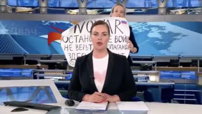 El 14 de marzo de 2022, a las 21.30, la periodista rusa Marina Ovsyannikova (Odesa, 1978) irrumpió en el telediario más visto del país con un cartel en contra de la guerra en Ucrania. La escena duró apenas seis segundos, pero bastó para que su vida diera un vuelco. Pocos minutos después, el director adjunto de los informativos le preguntó preocupado: “¿Eras tú?”. Su carrera profesional en la estatal Pervy Kanal (Canal 1) terminó en ese mismo instante. No se arrepintió. Tras 20 años trabajando en lo que ahora llama una “máquina de propaganda”, se transformó en símbolo de resistencia contra la narrativa oficial del presidente ruso, Vladímir Putin.