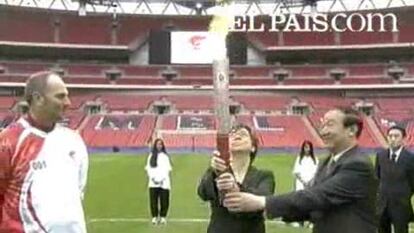 La tensión ha sido una constante durante el paso de la llama por la capital británica. Algunos manifestantes han protestado en las cercanías del estadio de Wembley mientras otro activista intentó arrebatar la antorcha olímpica a la presentadora de la BBC, Konnie Huq.