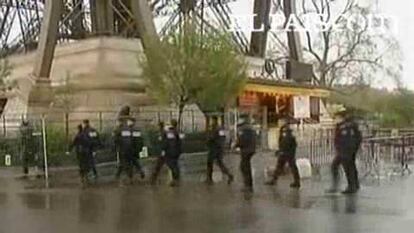 Una especie de 'burbuja' de 200 metros de largo estaba igualmente desplegada para proteger a los 80 relevistas que tenían previsto pasear la llama por París, desde la torre Eiffel al estadio Chárléty tras haber pasado por los Campos Elíseos, la plaza de la Concordia y el Ayuntamiento.