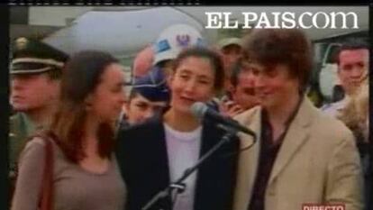 La ex candidata presidencial colombiana se abrazó a sus hijos, a quienes no veía desde hacía siete años, y confió a la prensa que este encuentro era "algo parecido al paraíso". "Son mi orgullo y por ellos seguí con ganas de salir de la selva (...) La última vez que vi a Lorenzo era muy chiquitín. Estoy muy orgulloso de ellos; lucharon por estar conmigo, dieron una batalla hermosísima", aseguró.