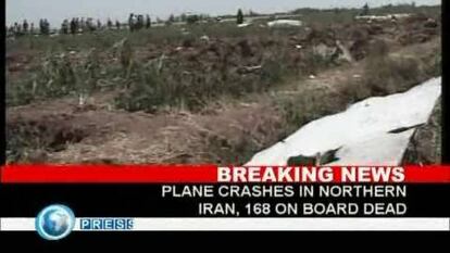 Las imágenes de la televisión muestran un enorme cráter que el avión ha causado al caer sobre una zona agraria, con multitud de pedazos del fuselaje humeantes repartidos por el suelo. Un funcionario de la provincia de Qazvin ha declarado a la agencia semioficial Fars que el aparato había sufrido problemas técnicos y que el piloto intentó hacer un aterrizaje de emergencia. "Desgraciadamente, el aparato se ha incendiado y se ha estrellado", ha dicho.