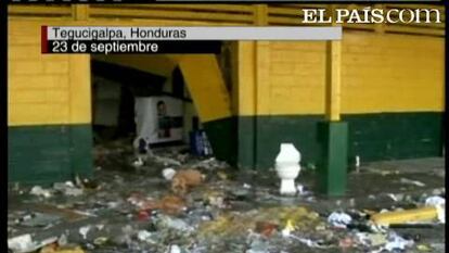 Los disturbios se siguen repitiendo en varias zonas de la capital hondureña, mientras miles de hondureños se han lanzado a las calles en busca de abastecerse, después de que el Gobierno de facto suspendiera durante varias horas el toque de queda decretado tras el regreso sorpresivo del presidente Zelaya. Las puertas de los supermercados están abarrotadas de personas que buscan hacerse con alimentos y agua potable, y en medio de la desesperación, se han producido discusiones y enfrentamientos. El caos reina en Honduras.