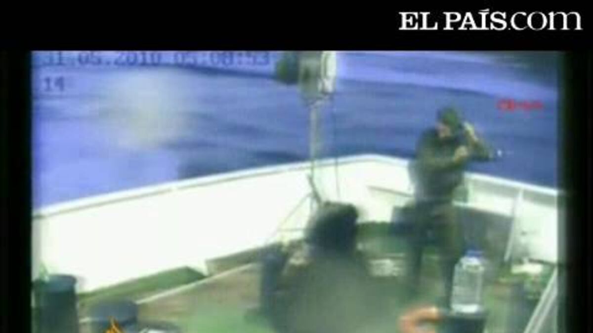 Conexión con el periodista de Al Jazeera, Jamal Elshayyal, dentro del barco Mavi Marmara. Habla de la bandera blanca y de cómo los soldados están disparando pese a la acción pacífica.