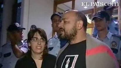 Los tres estaban en la sala de prensa del transbordador Mavi Mármara cuando se produjo el asalto de las fuerzas israelíes. "A pesar de estar perfectamente identificados nos apuntaron con sus armas con rayos láser a la cabeza. Después nos han pegado, nos han insultado. Yo sólo he comido una vez en todo este tiempo", asegura Tapial, veterano representante de los movimientos alternativos en Madrid. Laura Arau, su compañera sentimental, mantuvo silencio durante las declaraciones de Manu, mientras Segarra, colaborador del canal latinoamericano Telesur, asentía con gesto serio. Solo al final se atrevió a hablar para recordar su situación durante el asalto. "Todos nos quedamos como paralizados. Unos se pusieron delante de los soldados haciendo el signo de la victoria con los dedos. Yo no sentía miedo, y me puso a hacer lo que mejor sé hacer: grabar los hechos con mi cámara de vídeo", relata Laura. Todo el material gráfico de la flotilla ha quedado confiscado por las fuerzas de seguridad israelíes. Así que Laura no podrá contemplar las imágenes que tomó.