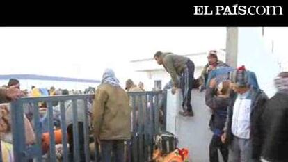 Grupos de jóvenes tunecinos se erigen en improvisados funcionarios e intentan contener la avalancha humana que huye de la represión de Gadafi a través del paso fronterizo de Ras el Ajdir.|GORKA LEJARCEGI