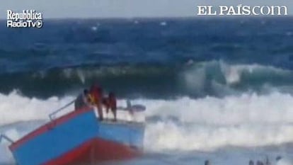 La embarcación, que iba sobrecargada de refugiados libios, ha encallado en una pequeña cala rocosa