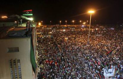 Bengasi, capital de los rebeldes en el este de Libia, ha vivido esta madrugada un ambiente de delirio. Decenas de miles de personas han salido a las calles para celebrar las noticias que llegaban desde Trípoli. Cláxones, disparos de armas automáticas y gritos sobre el final de Gadafi han ensordecido el bastión rebelde.