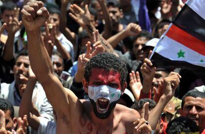 “Mi jefe decidió apoyar la revolución y yo le seguí contento”, declara Fares. Pero no es solo obediencia debida. “Queremos que Ahmed Ali se vaya”, subraya en sintonía con los acampados, mientras muestra los destrozos causados por los combates.