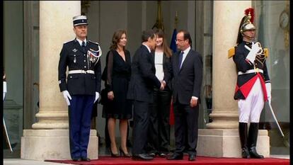François Hollande es desde hoy el séptimo presidente de la V República Francesa y el número 24 de la historia del país. El segundo jefe del Estado socialista desde la posguerra mundial ha sido investido a las 10.30 en el palacio del Elíseo durante una ceremonia breve, solemne y sobria. Ante la mirada de 800 periodistas acreditados y de dos centenares de invitados, Hollande ha sido recibido por el presidente saliente, Nicolas Sarkozy, en las escaleras del palacio. Ambos han conversado durante media hora, y el ya exjefe del Estado ha abandonado el Elíseo con su esposa, Carla Bruni. Hollande y su compañera, Valérie Trierweiler, les han acompañado hasta el patio, y cuando ambos han subido al coche, Francia ha comenzado una nueva etapa, que muchos europeos esperan lo sea también para Europa.