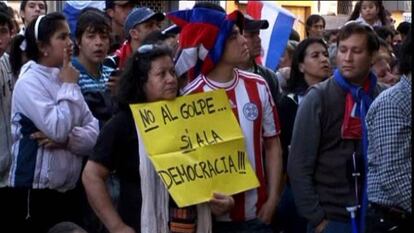 Conforme van pasando las horas desde que el Congreso de Paraguay destituyó de la presidencia del país a Fernando Lugo, el antiguo obispo va endureciendo su discurso. La noche del viernes, cuando más tensos estaban los ánimos en las calles de Asunción, Lugo hizo un firme llamamiento a la paz. Denunció, eso sí, que “la historia paraguaya” acababa de ser “herida profundamente”, que se habían “transgredido todos los principios de manera cobarde, de manera alevosa”, y la ley había sido “torcida”. Pero se cuidó mucho de ir más allá. En la noche del sábado, sin embargo, declaró en una improvisada conferencia de prensa en plena calle que “hubo un golpe de Estado parlamentario” en Paraguay. Se sumaba así a los mandatarios de Argentina, Ecuador y Venezuela, quienes habían utilizado horas antes la misma expresión.
