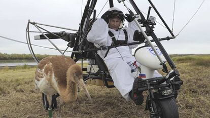 La entrevista fue emitida horas después de que se difundieran unas imágenes del presidente ruso en las que aparece el mandatario volando en un ultraligero liderando un grupo de cigüeñas en un experimento científico relacionado con las migraciones de estos animales.