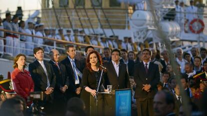 Cristina Fernández da la bienvenida a la fragata Libertad