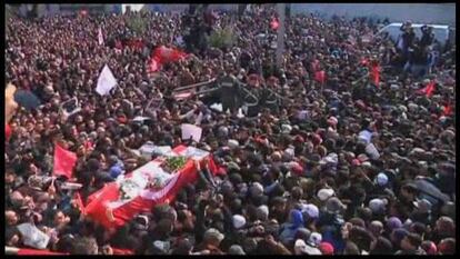Rodeado de políticos laicos y de conocidos intelectuales y artistas, el histórico dirigente comunista Hamma Hammami fue el encargado de pronunciar el elogio fúnebre. “Tu sangre derramada no ha sido un sacrificio vano; no te traicionaremos; no vamos a retroceder”, afirmó en medio de los aplausos y de los llantos. Después la muchedumbre entonó el himno nacional.
