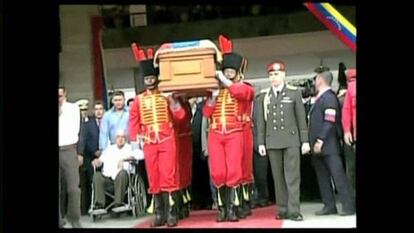 La noticia descarta que el caudillo bolivariano, fallecido de cáncer el pasado 5 de marzo, pueda ser expuesto en una urna transparente, como Lenin o Mao. Lo que no ha sido olvidado del todo es que los restos sean mudados hacia el Panteón Nacional, donde está la urna del Libertador Simón Bolívar, de quien Chávez fue un devoto seguidor. Para que ese deseo, que fue escuchado en el épico velatorio de diez días, se cumpla de inmediato, debería solicitarse una enmienda a la Constitución, que establece que la petición sólo procedería transcurridos 25 años del fallecimiento.