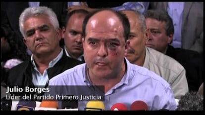 María Corina Machado, diputada opositora independiente a la Asamblea Nacional de Venezuela, usa un collarín. Su rostro, en particular su nariz, luce hinchado. El médico esperará a que ceda el hematoma para decidir si se opera o no de la desviación del tabique nasal que sufrió después de la cruenta trifulca ocurrida en la última sesión del Parlamento. Ella y el diputado del partido Primero Justicia, Julio Borges, con una herida en el pómulo izquierdo que parece causada por un campeón mundial de artes marciales, llevaron la peor parte de la refriega, que dejó otros nueve diputados aporreados. El opositor Américo de Grazia debió ser hospitalizado tras rodar por unas escaleras y ser golpeado por cinco chavistas. Los diputados antichavistas Nora Bracho, Homero Ruiz e Ismael García sufrieron contusiones menores.
