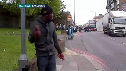 Según el vídeo que un ciudadano grabó y emitió la cadena ITV, este testigo no andaba desencaminado. El metraje, de calidad casera, muestra a un hombre negro y corpulento, enfundado en una trenca gris y gorro de lana, con dos cuchillos de carnicero en las manos cubiertas de sangre. “Estaban como enloquecidos, eran animales”, cuenta el mismo testigo. Arrastraron el cuerpo hasta el centro de la calzada”.