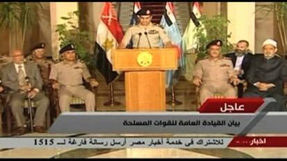 El Ejército de Egipto depuso este miércoles al primer presidente civil elegido en las urnas en la historia del país, el islamista Mohamed Morsi, después de solo un año de Gobierno y tras cuatro intensas jornadas de multitudinarias manifestaciones de protesta. El comandante en jefe del Ejército y ministro de Defensa, general Abdel Fatah al Sisi, compareció pasadas las nueve de la noche en televisión, flanqueado por líderes opositores y religiosos y la plana mayor de las fuerzas armadas para comunicarle a la nación que el país tendría un nuevo presidente interino, el jefe de la Corte Suprema Constitucional, Adly Masour, quien ahora liderará un periodo transicional que culminará con nuevas elecciones presidenciales y parlamentarias. Los militares suspendieron también la polémica Constitución de corte islamista impulsada por Morsi y aprobada el año pasado por las urnas.