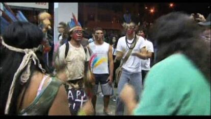 Previamente, un grupo de cerca de dos mil personas se reunió en frente del estadio de fútbol de las Laranjeiras para defender los derechos de los homosexuales, según constató otro periodista de Efe. El evento, coordinado por las redes sociales, comenzó en la plaza Largo do Machado, con representantes del movimiento LGBT (lesbianas, gays, bisexuales, transexuales, travestis y transexuales), que realizaron una protesta en las escalinatas de la iglesia Nuestra Señora de la Gloria. Allí organizaron "un besazo gay", entre homosexuales, y algunas mujeres se quitaron la parte superior de la ropa como forma de protesta, lo que molestó a peregrinos que estaban en el lugar, aunque no hubo enfrentamientos. El grupo avanzó hacia el Palacio de Guanabara, pero fue detenido por un bloqueo de la policía.