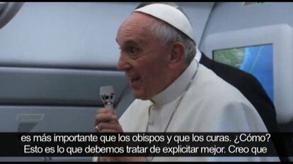Francisco se somete durante una hora y 20 minutos a las preguntas de los periodistas en el vuelo de regreso de Río de Janeiro Habla de la corrupción en el Vaticano, del papel de la mujer, de su relación con Benedicto XVI y de la actitud de la Iglesia ante las nuevas familias