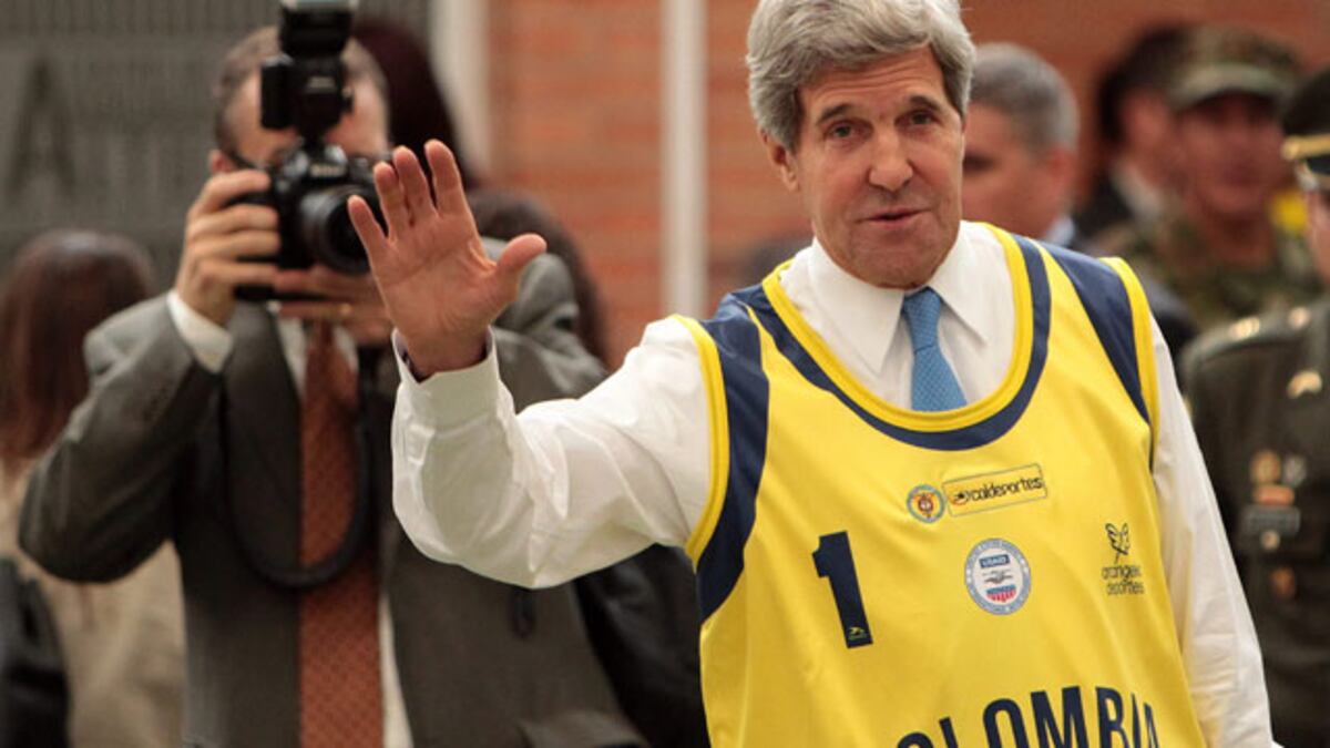 Kerry apareció muy temprano en su primera visita a Colombia, con una camiseta deportiva estampada con el nombre de Colombia y el numero 1, para acompañar a un grupo de soldados heridos en combate y jugar al voleibol sentado con la selección colombiana conformada por militares mutilados en la guerra.