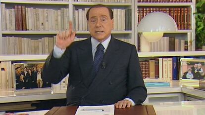 Algo grave le está pasando a Silvio Berlusconi, peor incluso que sus dos recientes condenas definitivas. Su inagotable y muy rentable máquina de fabricar titulares periodísticos —la misma que en las pasadas elecciones logró en un par de meses resucitar un partido clínicamente muerto y oscurecer a sus rivales— parece atorada. Después de un par de semanas amenazando con un vídeo-mensaje que conmocionaría la vida política italiana, el exprimer ministro se dejó caer con una ristra de frases gastadas. Dijo que quiere mucho a Italia —con esa declaración de amor arribó a la política hace dos décadas—, que "es absolutamente inocente", pero que la izquierda y los jueces corruptos llevan toda la vida confabulando para destruirlo y que, por ello, los italianos deben rebelarse de una vez.
