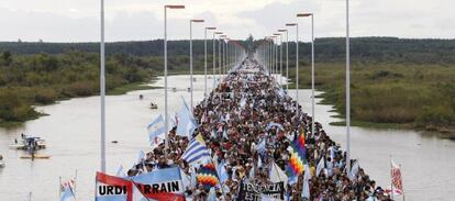 A más de un uruguayo que salió de viaje por el mundo le ha pasado que lo confundan por su acento con un argentino. “Por suerte no lo soy”, contestan algunos uruguayos. Otros les tienen más cariño a sus vecinos. Son pueblos hermanos, muy parecidos, pero también diferentes, ahora otra vez enfrentados por el impacto ambiental de una fábrica de pasta celulosa en la ciudad uruguaya de Fray Bentos, en el límite con la argentina Gualeguaychú. El Gobierno de Cristina Fernández de Kirchner, de excedencia por un coágulo en el cerebro, ha anunciado la semana pasada que recurriría al Tribunal Internacional de La Haya para evitar que la empresa finlandesa UPM aumente la producción de celulosa, mientras que vecinos de Gualeguaychú marcharon el domingo hasta la frontera con Uruguay para protestar contra el incremento autorizado por el presidente uruguayo, José Mujica.
