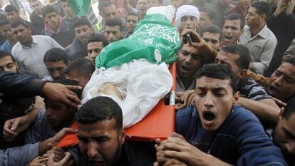 La última ola de violencia en Gaza, la peor en el último año, se ha saldado esta madrugada con cuatro miembros de Hamás muertos y cinco soldados israelíes heridos, uno de ellos de gravedad. En la noche del jueves, un grupo de militares de la Brigada Golani y del cuerpo de Ingenieros de Israel fue sorprendido por la explosión de una bomba en la frontera de la franja. Estaban reconociendo y vigilando el túnel de 1,7 kilómetros de largo localizado hace un mes, que conecta Gaza con un kibutz en suelo israelí y que hubiera podido servir en un futuro para perpetrar atentados o secuestros. Mientras los militares eran trasladados a un hospital en Beer Sheva –donde tres de ellos han sido intervenidos, sin que corra peligro su vida-, el Ejército israelí devolvió el fuego con tanques, golpeando a una célula de las Brigadas Al Qassam, brazo armado de Hamás, el grupo que actualmente gobierna en la franja. Según han confirmado fuentes palestinas a la agencia Maan, en este ataque, cerca de Khan Younis, al sur de Gaza, murió un miliciano y otro resultó herido de gravedad.