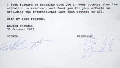 El revuelo mediático fue desmedido. El diputado de Los Verdes Hans-Christian Ströbele, veterano de 74 años bregado en mil batallas políticas, presentó el viernes ante cientos de periodistas el producto de su viaje a Moscú: una carta firmada la víspera por Edward Snowden, en la que el "antiguo empleado de la Agencia Nacional de Seguridad (NSA), la Agencia Central de Inteligencia (CIA) y la Agencia de Inteligencia de la Defensa (DIA)" mantiene haber sido testigo de "violaciones sistemáticas de la ley" por parte del Gobierno de Washington. Decir la verdad sobre estas violaciones, se defiende Snowden, "no es un crimen". El informático se dijo dispuesto a testificar ante la Fiscalía Federal alemana sobre estas actividades ilegales de los estadounidenses en Europa. También anunció su disposición a declarar ante el congreso de Estados Unidos, donde está en busca y captura.