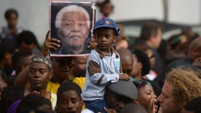 Mandela salió de la cárcel hace casi 24 años como luchador para la libertad de los negros, como temible terrorista para la mayoría de los blancos. El domingo, como cada día desde que murió Mandela el jueves pasado, se mezclaban blancos y negros, judíos y musulmanes, mestizos e hindúes, pequeños y mayores, ricos y pobres en los alrededores de la casa donde él vivió sus últimos años, la imagen viva de la nación del arcoiris con la que Mandela soñó, por la que luchó durante la mayor parte de su vida y que, finalmente, él construyó. Ningún grupo se atribuía mayor derecho a celebrar el recuerdo de Mandela. A nadie en el contingente negro jamás se le hubiera ocurrido preguntar: ¿qué hacen tantos blancos aquí? ¿qué derecho tienen nuestros antiguos opresores a reclamar a Mandela como suyo?