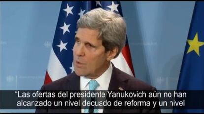 Para Kerry, las ofertas de Yanukóvich "aún no han alcanzado una dimensión suficiente como para que la oposición tenga la impresión de que puede sentarse legítimamente a la mesa" de negociaciones con las autoridades.