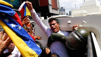 Leopoldo López, que desafía al Gobierno de Maduro, se entrega a la policía en una jornada de grandes marchas de ambos bandos